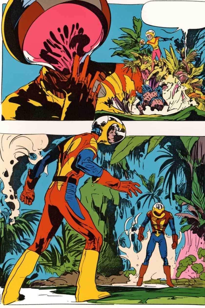generiert nach Stilvorlagen aus PERRY Nr. 38-43, mit Referenzen auf Esteban Maroto, Alex Niño, Jose Gonzales. niji-Parameter, sref 2526862084, 2526862084. Stil zwar nicht identisch mit Pop-Art-PERRYs, aber farblich und kompositorisch durchaus in der Tradition.
