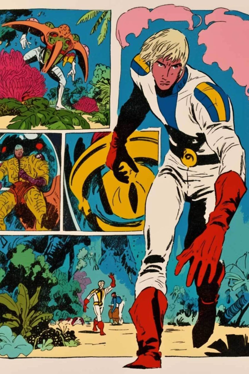 generiert nach Stilvorlagen aus PERRY Nr. 38-43, mit Referenzen auf Esteban Maroto, Heinz Edelmann, Jose Gonzales. niji-Parameter, sref 2526862084, 2526862084. Stil zwar nicht identisch mit Pop-Art-PERRYs, aber farblich und kompositorisch durchaus in der Tradition.