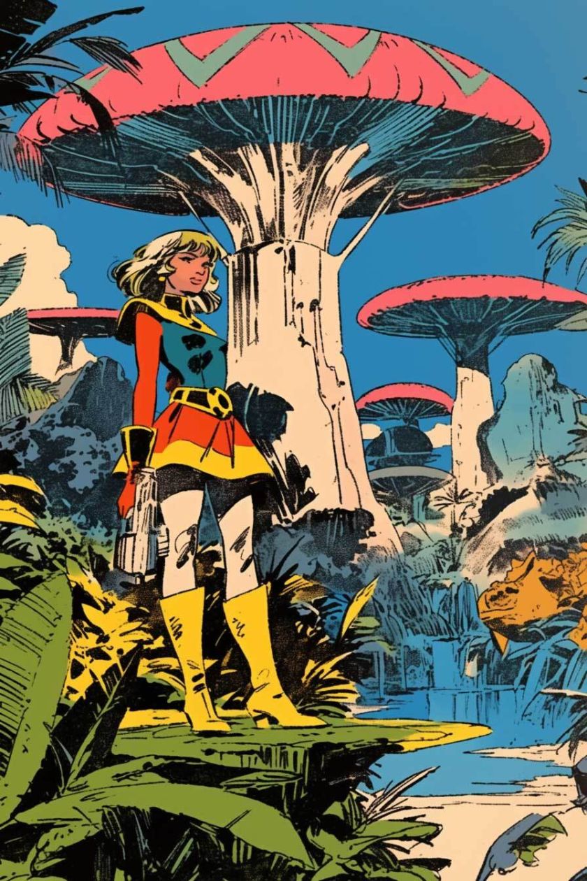 generiert nach Stilvorlagen aus PERRY Nr. 38-43, mit Referenzen auf Esteban Maroto, Heinz Edelmann, Jose Gonzales. niji-Parameter, sref 2526862084, 2526862084. Stil zwar nicht identisch mit Pop-Art-PERRYs, aber farblich und kompositorisch durchaus in der Tradition.