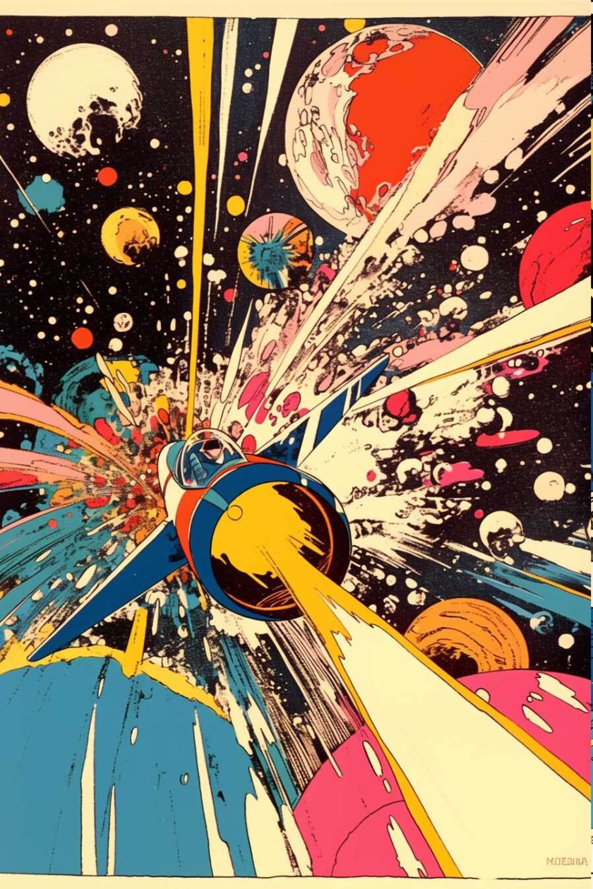 generiert nach Stilvorlagen aus PERRY Nr. 38-43, mit Referenzen auf Esteban Maroto, Heinz Edelmann, Jose Gonzales. niji-Parameter, sref 2526862084, 2526862084. Stil zwar nicht identisch mit Pop-Art-PERRYs, aber farblich und kompositorisch durchaus in der Tradition.