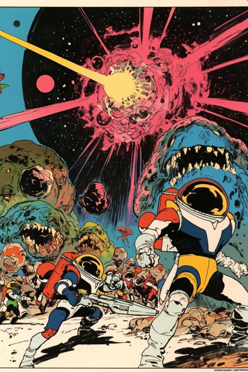 generiert nach Stilvorlagen aus PERRY Nr. 38-43, mit Referenzen auf Esteban Maroto, Heinz Edelmann, Jose Gonzales. niji-Parameter, sref 2526862084, 2526862084. Stil zwar nicht identisch mit Pop-Art-PERRYs, aber farblich und kompositorisch durchaus in der Tradition.