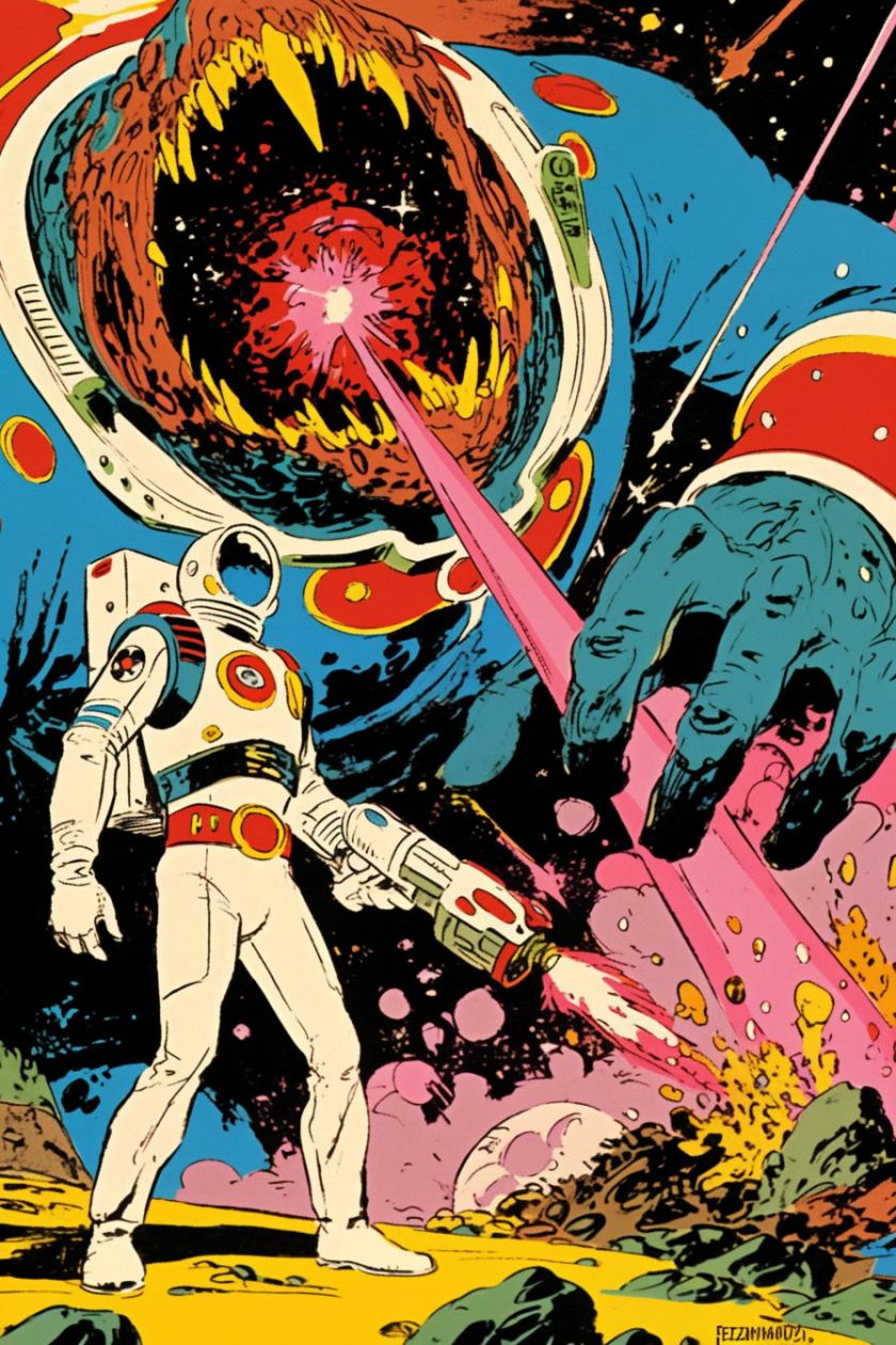 generiert nach Stilvorlagen aus PERRY Nr. 38-43, mit Referenzen auf Esteban Maroto, Heinz Edelmann, Jose Gonzales. niji-Parameter, sref 2526862084, 2526862084. Stil zwar nicht identisch mit Pop-Art-PERRYs, aber farblich und kompositorisch durchaus in der Tradition.