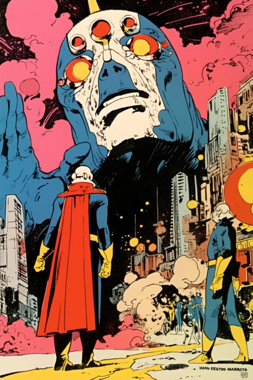 generiert nach Stilvorlagen aus PERRY Nr. 38-43, mit Referenzen auf Esteban Maroto, Heinz Edelmann, Jose Gonzales. niji-Parameter, sref 2526862084, 2526862084. Stil zwar nicht identisch mit Pop-Art-PERRYs, aber farblich und kompositorisch durchaus in der Tradition.