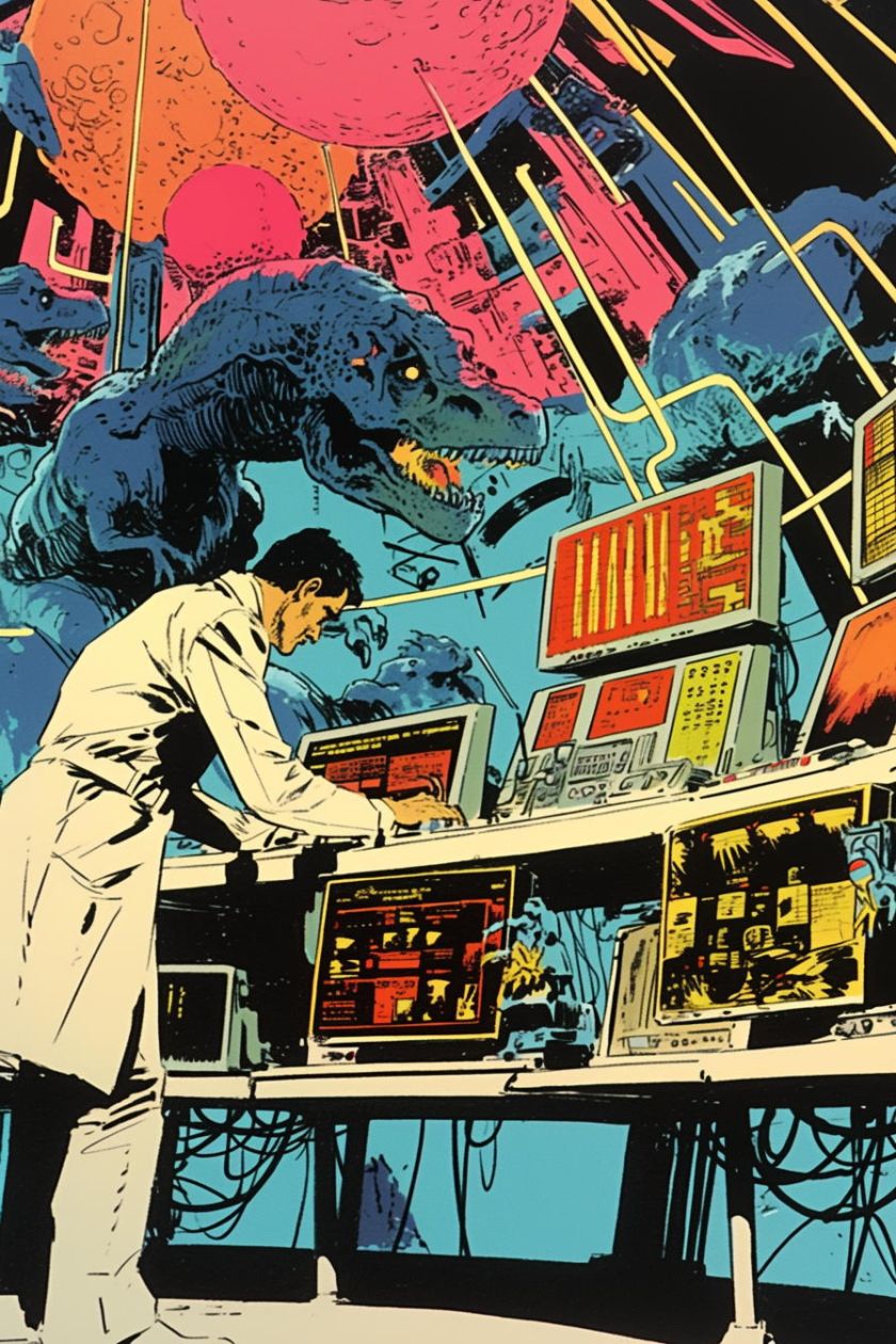generiert nach Stilvorlagen aus PERRY Nr. 38-43, mit Referenzen auf Esteban Maroto, Heinz Edelmann, Jose Gonzales. niji-Parameter, sref 2526862084, 2526862084. Stil zwar nicht identisch mit Pop-Art-PERRYs, aber farblich und kompositorisch durchaus in der Tradition.